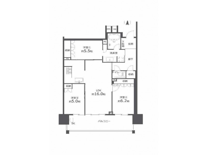 - 洋室: 6.2帖 / 5.5帖 / 5.0帖 /