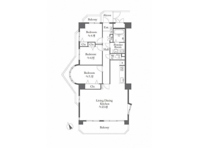 - 洋室: 5.3帖 / 4.9帖 / 4.9帖 /