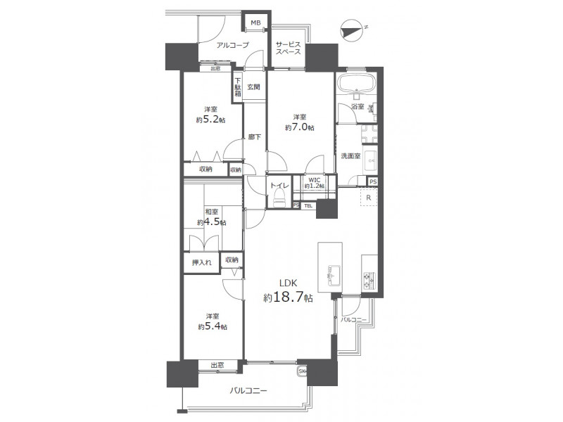 - 洋室: 7.0帖 / 5.4帖 / 5.2帖 /