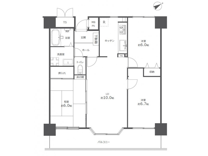 - 洋室: 6.7帖 / 6.0帖 /