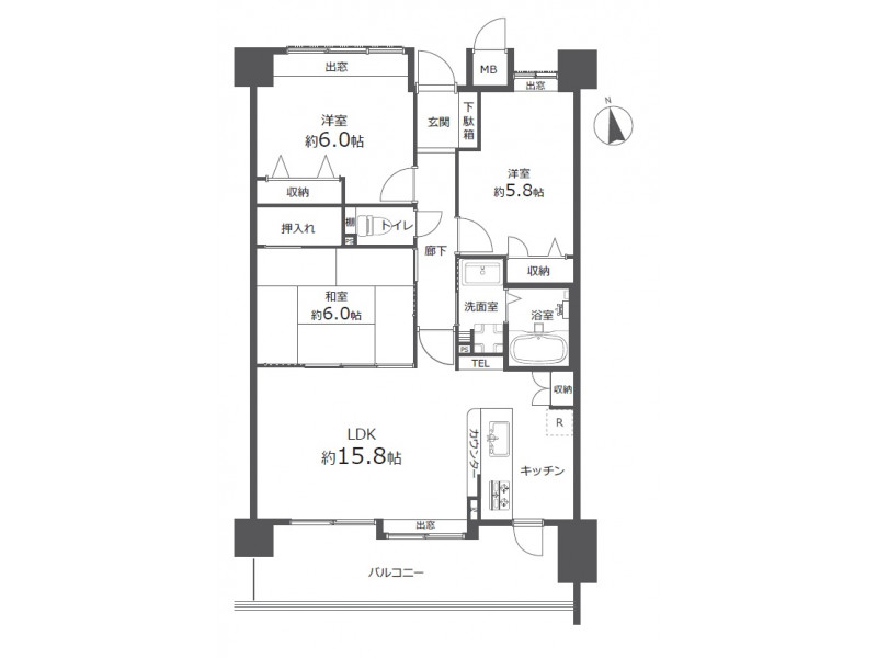 - 洋室: 6.0帖 / 5.8帖 /