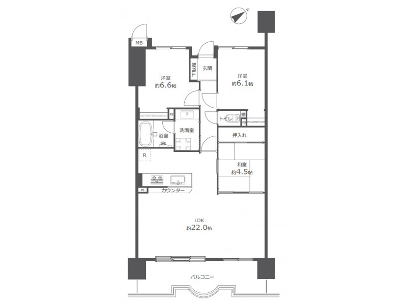 - 洋室: 6.6帖 / 6.1帖 /