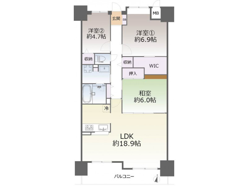 - 洋室: 6.9帖 / 4.7帖 /