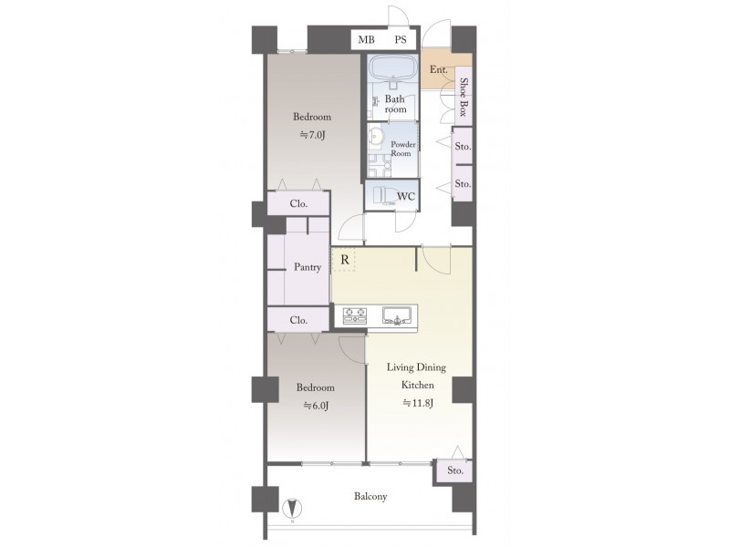 - 洋室: 7.0帖 / 6.0帖 /