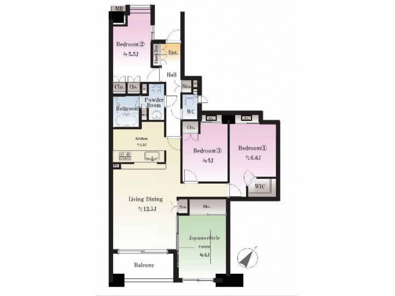 - 洋室: 6.6帖 / 5.5帖 / 5.0帖 /